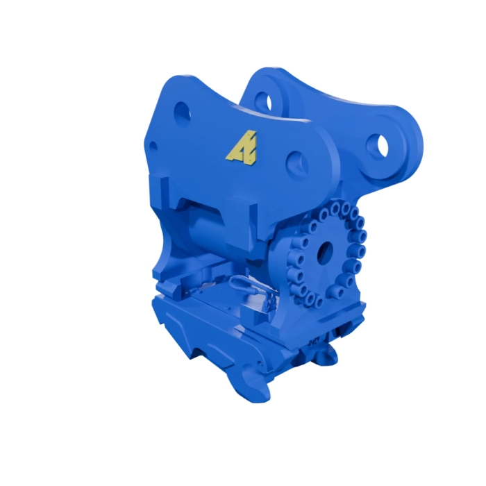 Le système repose sur un vérin rotatif fiable, avec limiteur de pression intégré. L’alimentation hydraulique passe à l’intérieur du vérin, protégeant les flexibles des risques extérieurs. L’ensemble est soudé sur une attache machine adaptée, puis couplé à l’attache rapide de votre choix.