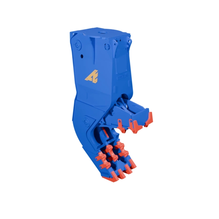 La conception est pensée pour durée : bâti en acier haute limite élastique, mâchoires avec renfort en acier anti-abrassion allant du 450HB au 600HB, vérin inversé avec alimentation par la tige. Les dents moulées sont boulonnées, interchangeables, montées sur deux niveaux pour améliorer l’attaque, avec une seule référence par modèle. Des témoins d’usure sont intégrés en bout de mâchoire.