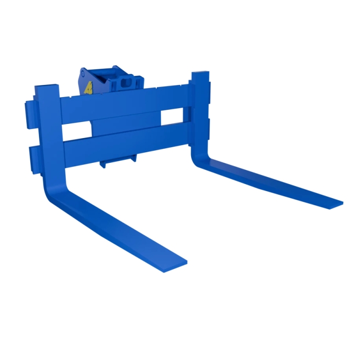 Disponible pour les pelles de 2,5 à 26 tonnes, il est proposé en plusieurs dimensions de tablier (1000 à 1800 mm) et longueurs de fourche (900 à 1200 mm) pour s’adapter à vos contraintes de travail. L’écartement des fourches se règle manuellement selon les besoins.