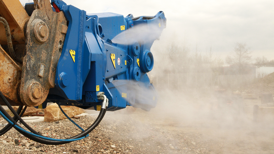 Premier système de brumisation intégré d'usine sur une pince de démolition. Primé de nombreuses fois pour son innovation dans toute l'Europe.